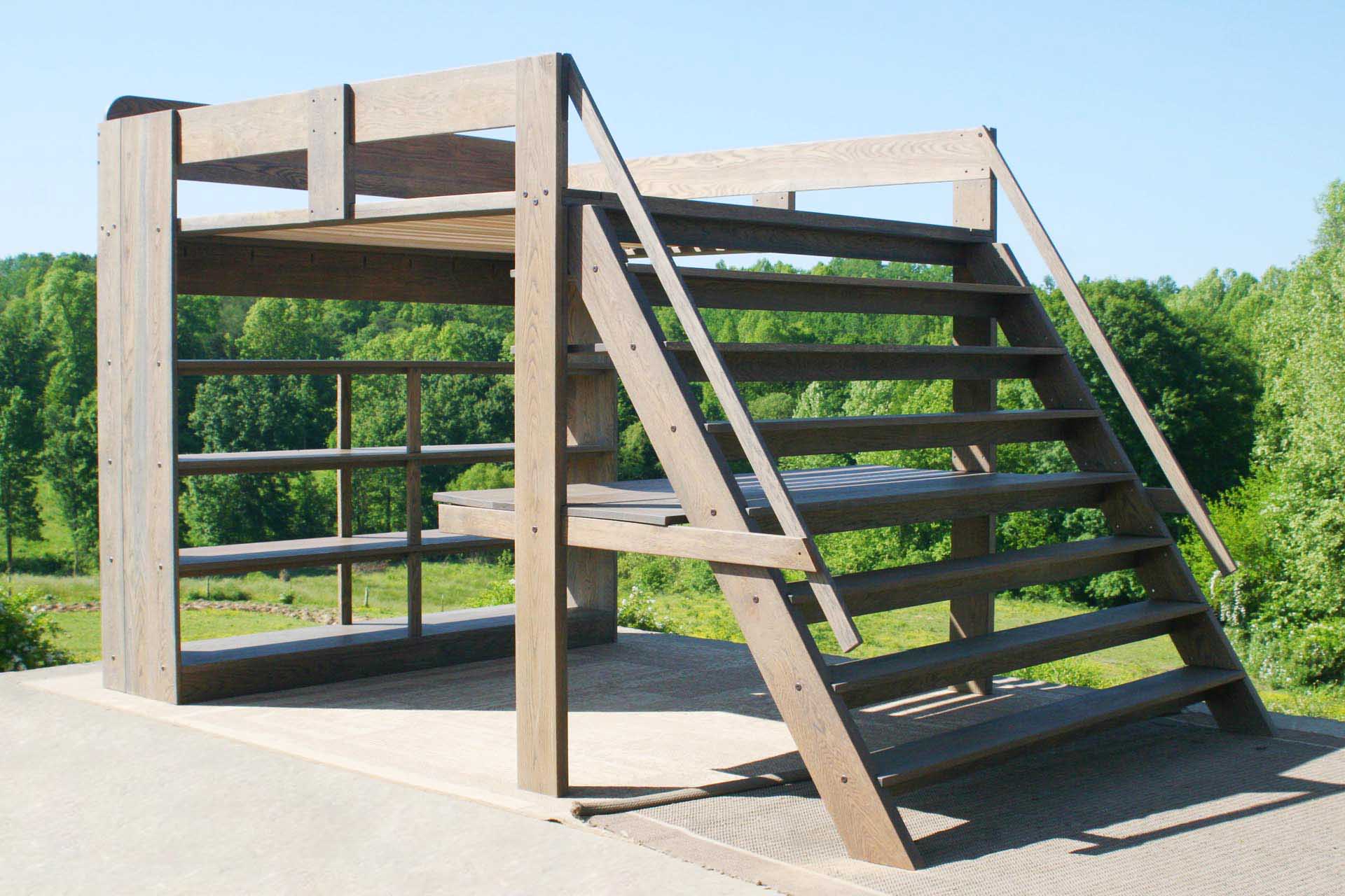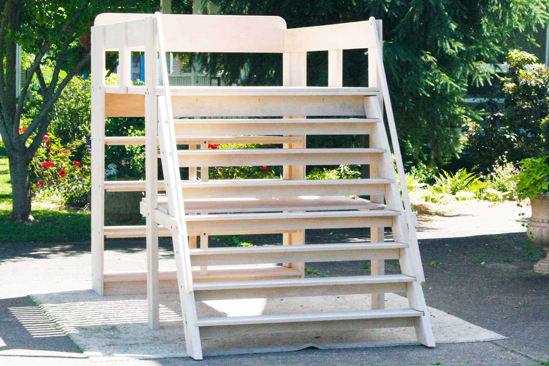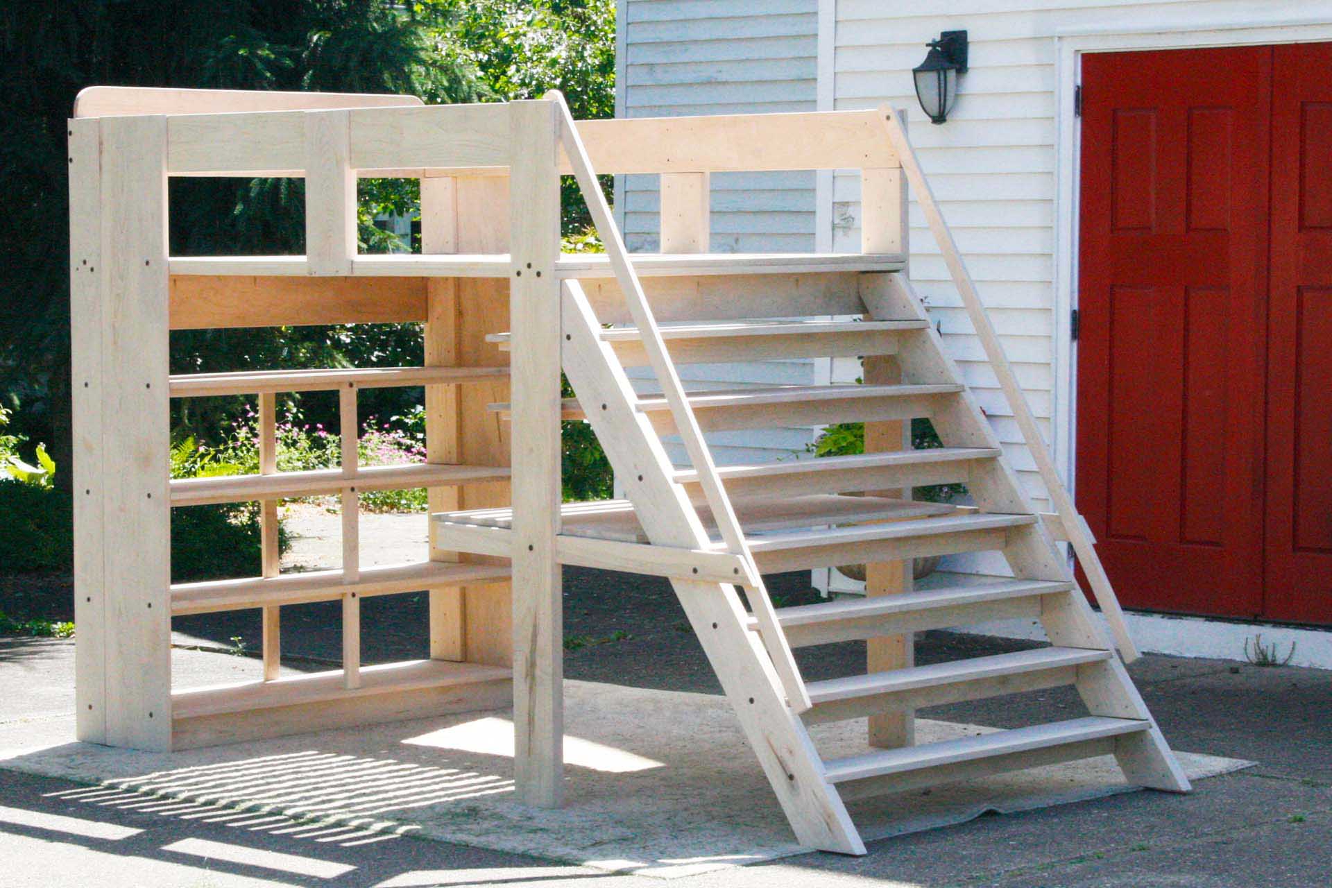 4. Stairs are located on the foot-end and span the total width of the bed as shown in the photo. The angle of the slope of the stairs is 35 degrees from vertical (55 degrees from horizontal)