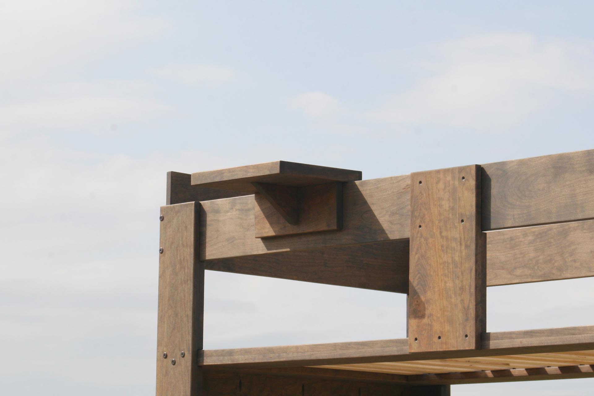 6. The bed assembles with bolts, with smooth bronze heads in visible areas.