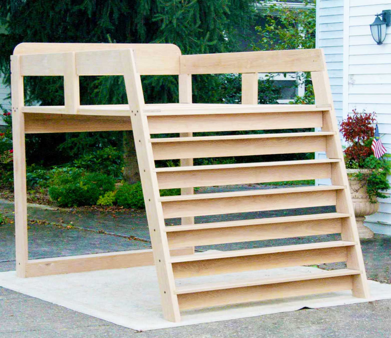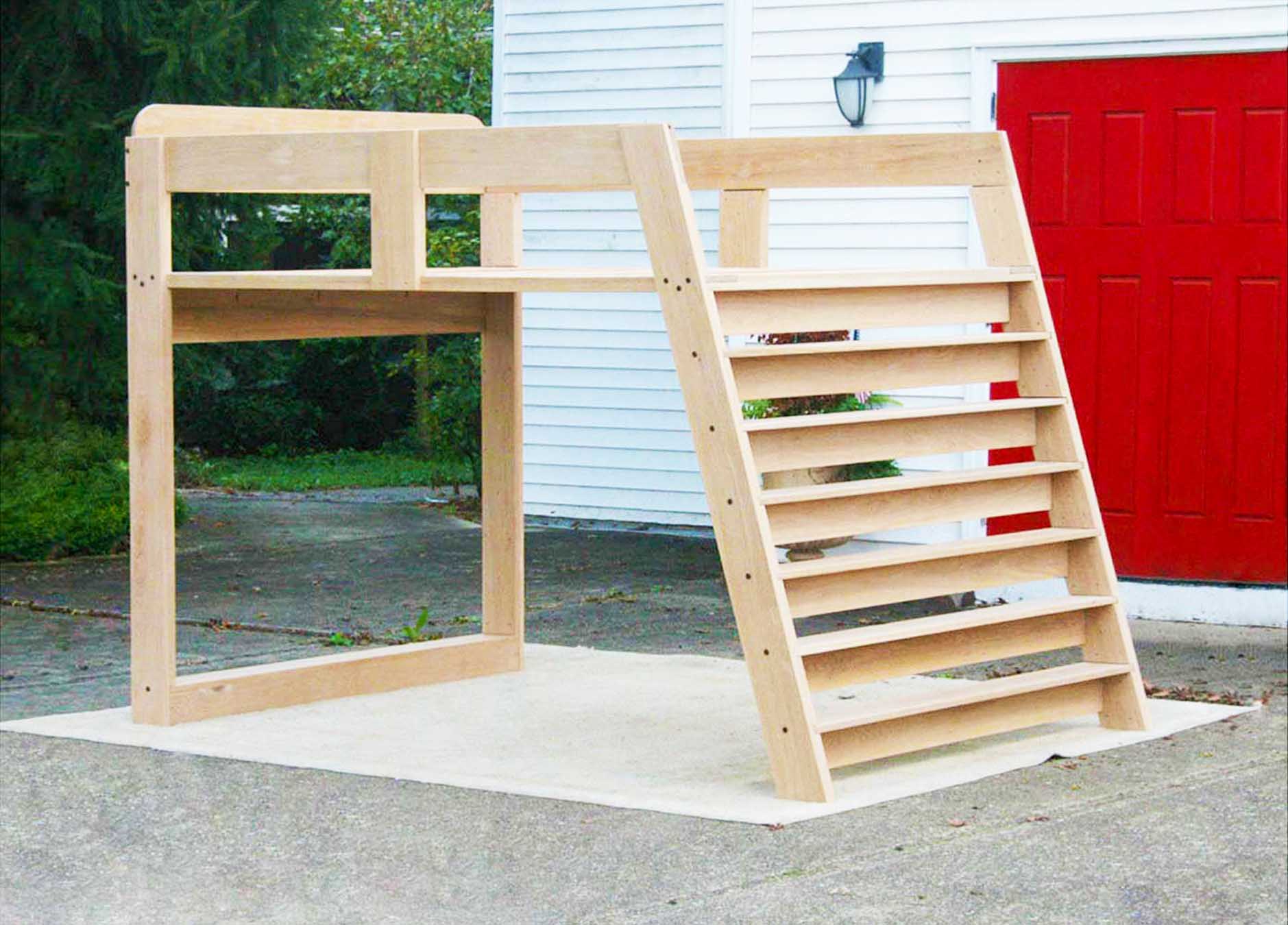Simple and space-saving! This loft bed integrates full width stairs into the bed structure. The bed is custom made for you. Contact Us to request almost any change that you would like.
