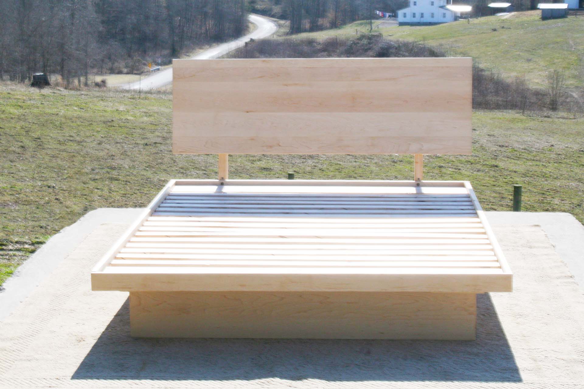 walnut platform bed front view with headboard